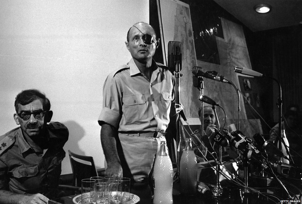 پھر یہ کہ بھٹو کی موشے دایان کے متعلق ایسی بڑھک ان دنوں شاہ عالم مارکیٹ میں آٹھ آنے یا ایک روپے والی دیوار پر ٹانگنے والے کیلینڈر نما پوسٹر شائع ہوکر پورے پاکستان میں بکے تھے۔ ایک طرف مکا لہراتے ہوئے غصیلے منہ والے بھٹو کی تصویر اور دوسری طرف ایک آنکھ پر پیچ پہنے موشے دایان کی تصویر، اس تحریر کے ساتھ کہ “ہم موشے دایان کی دوسری بھی آنکھ نکال دیں گے۔” موشے دایان جب وہ فوج میں تھے ان کی ایک آنکھ کسی بندوق باز کی اس گولی سے نکلی تھی، جب اس کی گولی کے اثر سے پتھر اور شیشے کے ذرے اڑ کر موشے دایان کی ایک آنکھ میں لگے تھے، جس سے آنکھ کو ضائع ہو گئی تھی۔