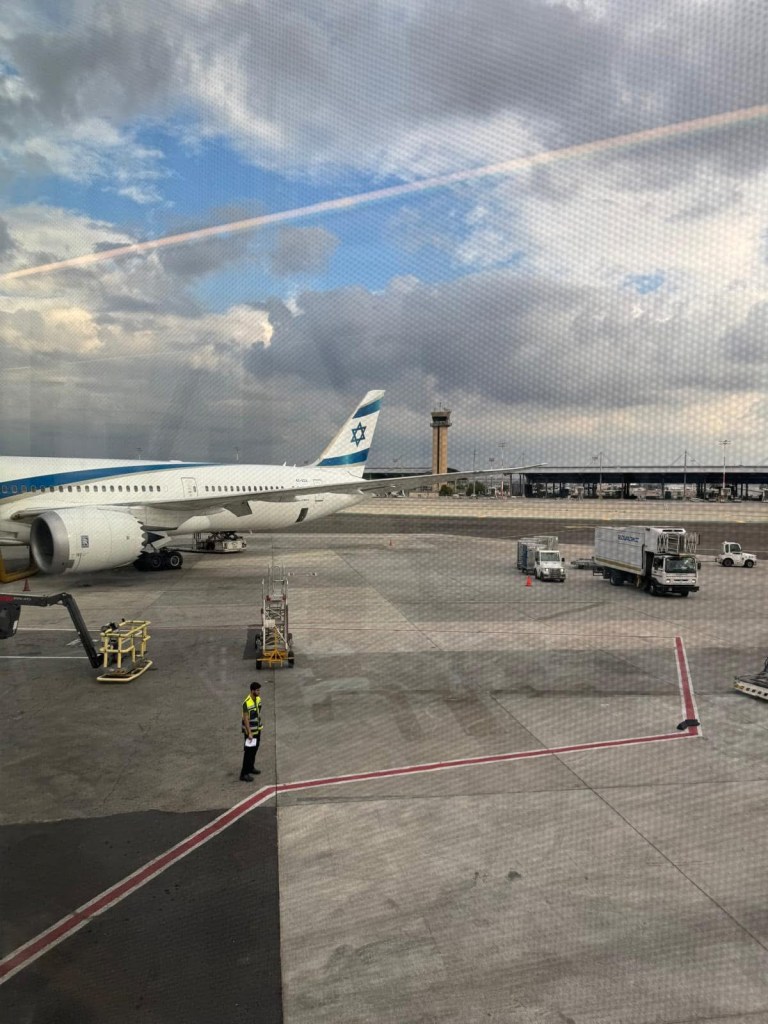 امریکی سیکورٹی چیک ان اور امیگریشن سے بغیر سوالات کے گذر کر جب ای ایل اے ایل بورڈنگ ایریا پر آیا پھر ایک طرح کے سوالات لیکن اس دفعہ مجھے زبانی اور جسمانی انٹرویو کیلے ایک کمرے میں لے جایا گیا۔ ایسے سوالات اور سامان کی تفصیلی تلاشی سے میری دوست اور اسرائیل کو ہمسفر ساتھی حنا اختر کو بھی گزرنا پڑا جو واشنگٹن سے آئی ہوئی تھیں اور ہمیں اسی اسرائیلی پرواز سے سفر کرنا تھا۔ ہماری نشستیں الگ الگ تھیں۔ میں نے دیکھا کہ ایسے سوالات اور سیکورٹی چیک وہ اپنے اسرائیلی مسافران سے بھی رینڈم کر رہے تھے۔ تقریبا ایک طرح کے ویزا انٹرویو جیسے سوالات۔